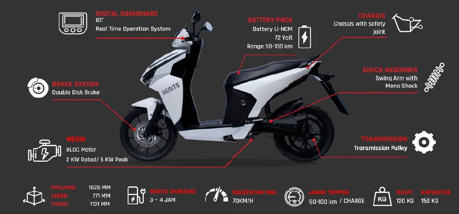 Fokus pada efisiensi battery untuk jarak terjauh dengan akselerasi lembut, dan top speed di 45 Km/Jam.